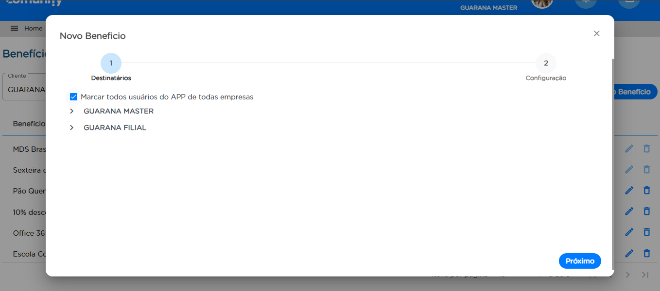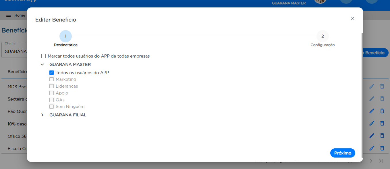 “Selecionar todos”, onde todos os grupos de colaboradores criados visualizarão o benefício.